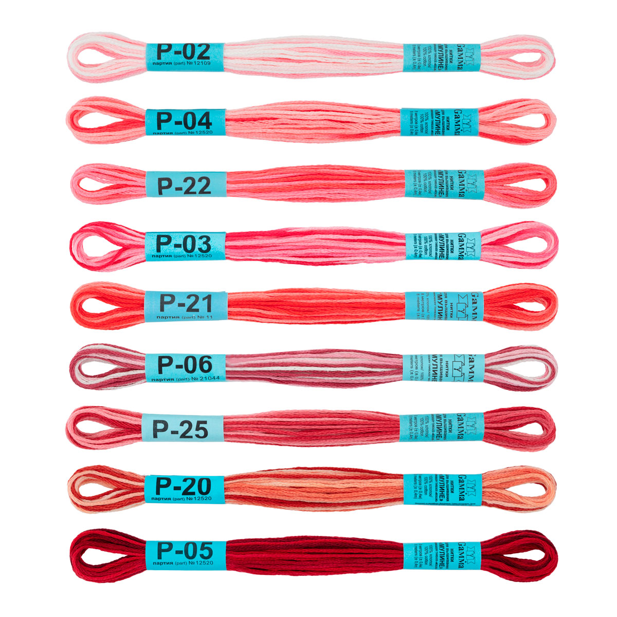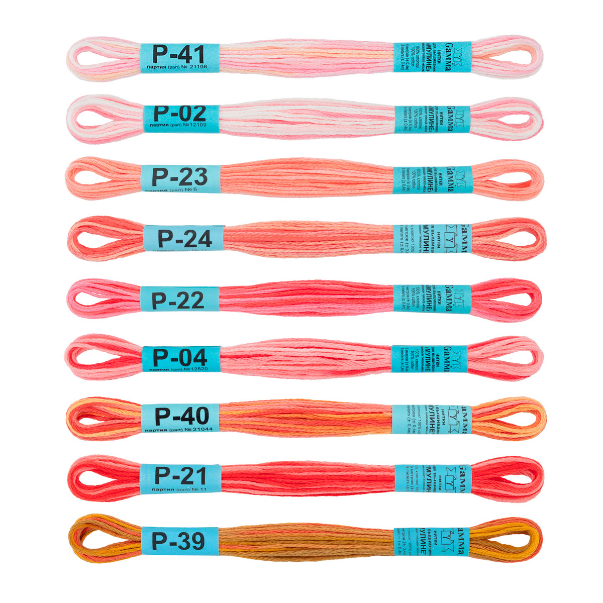 Нитки мулине "Gamma" изготавливаются на европейском оборудовании, с использованием качественных европейских красителей. Для производства используется только высококачественный длинноволокнистый египетский хлопок. Нить из него не пушится при вышивке и сохраняет великолепный внешний вид, а благодаря мерсеризации и газоопаливанию приобретает дополнительную прочность, гладкость и шелковистый блеск.