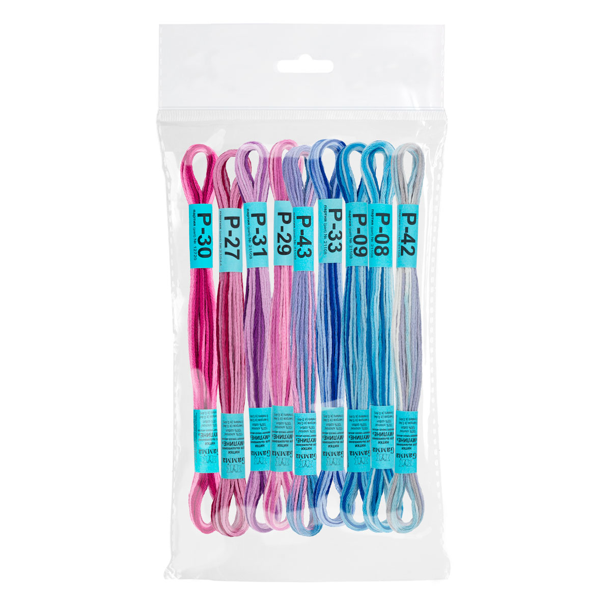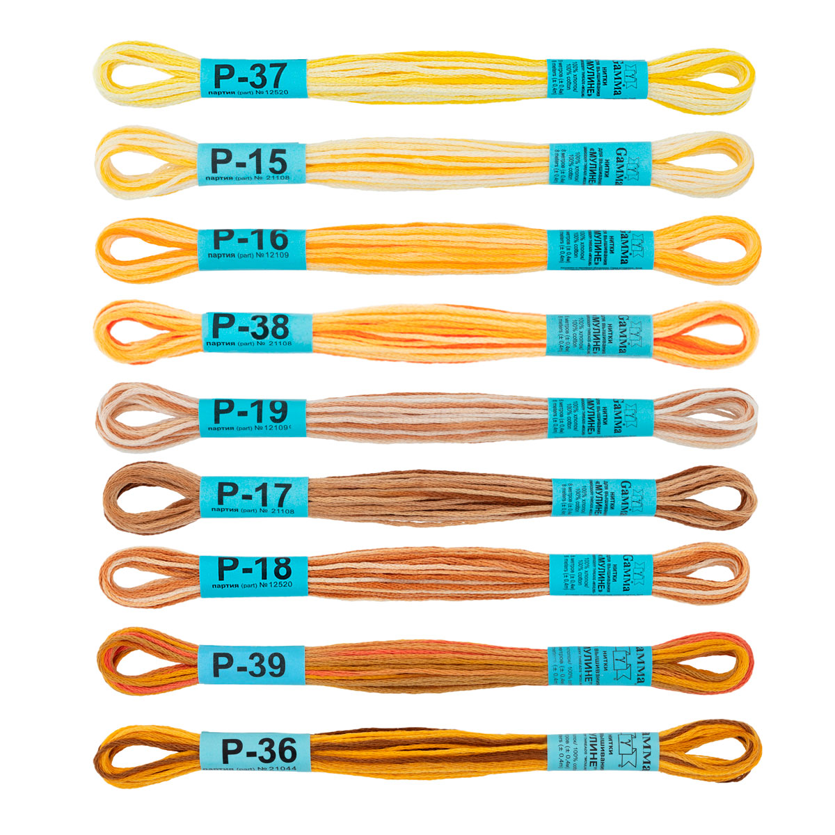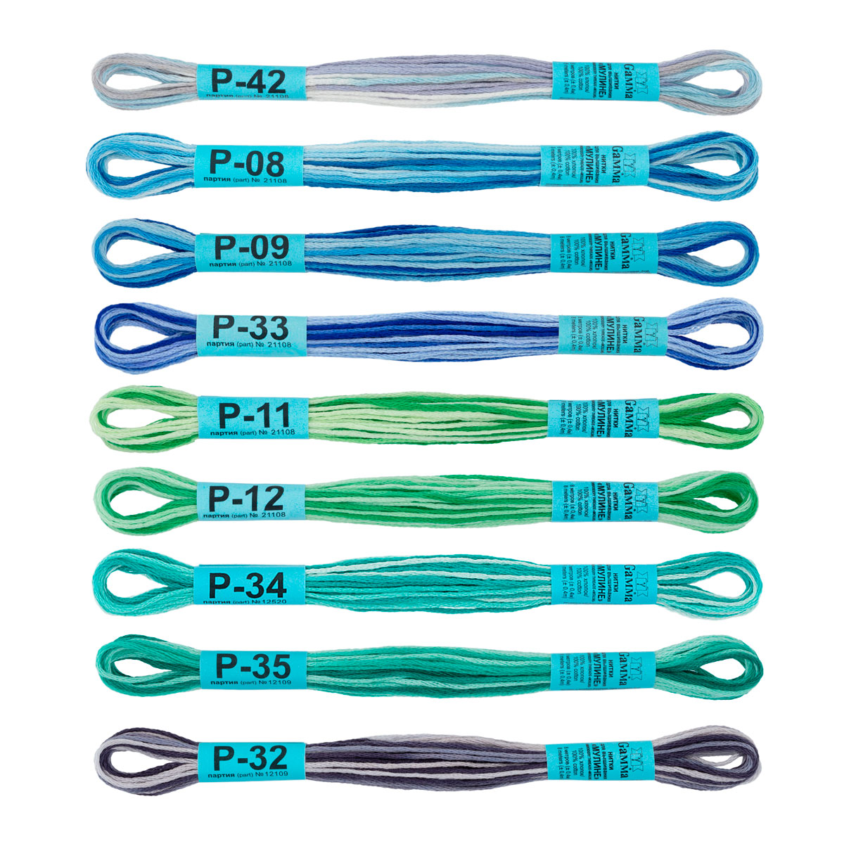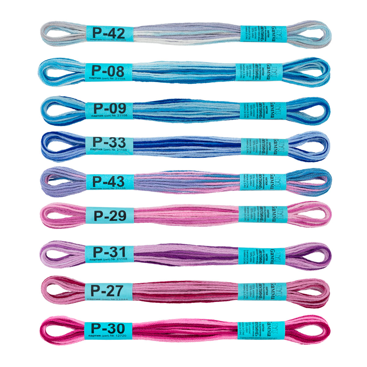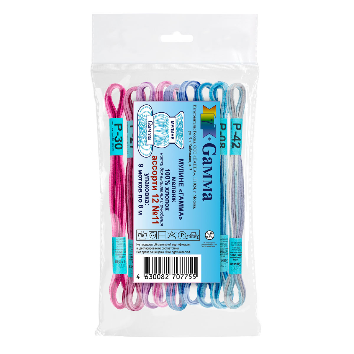 Нитки для вышивания "Gamma" набор мулине № 11 меланж 100% хлопок 9 цв. x 8 м