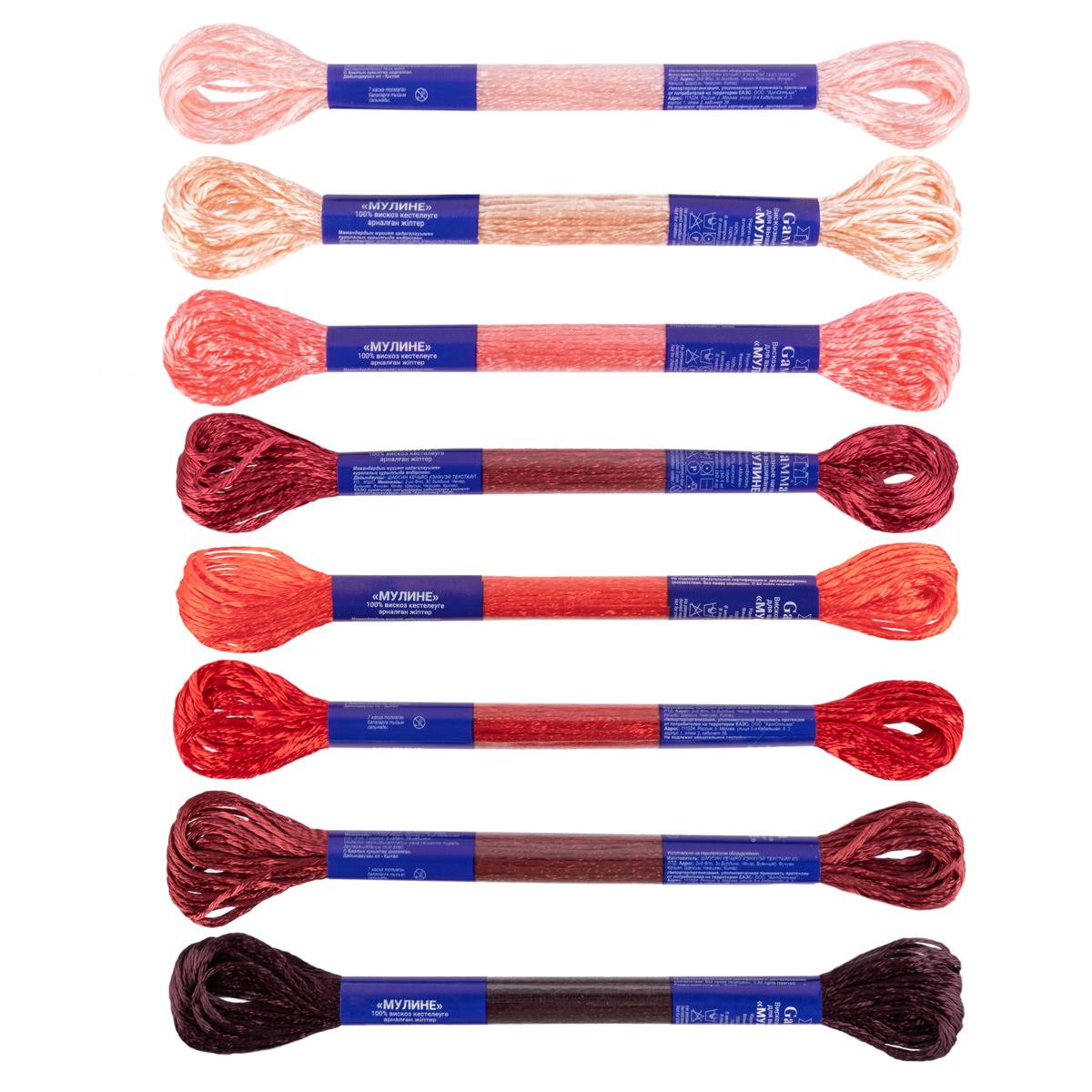 В набор вискозного мулине VM-08 входит 8 мотков по 8 м, разной цветовой палитры.