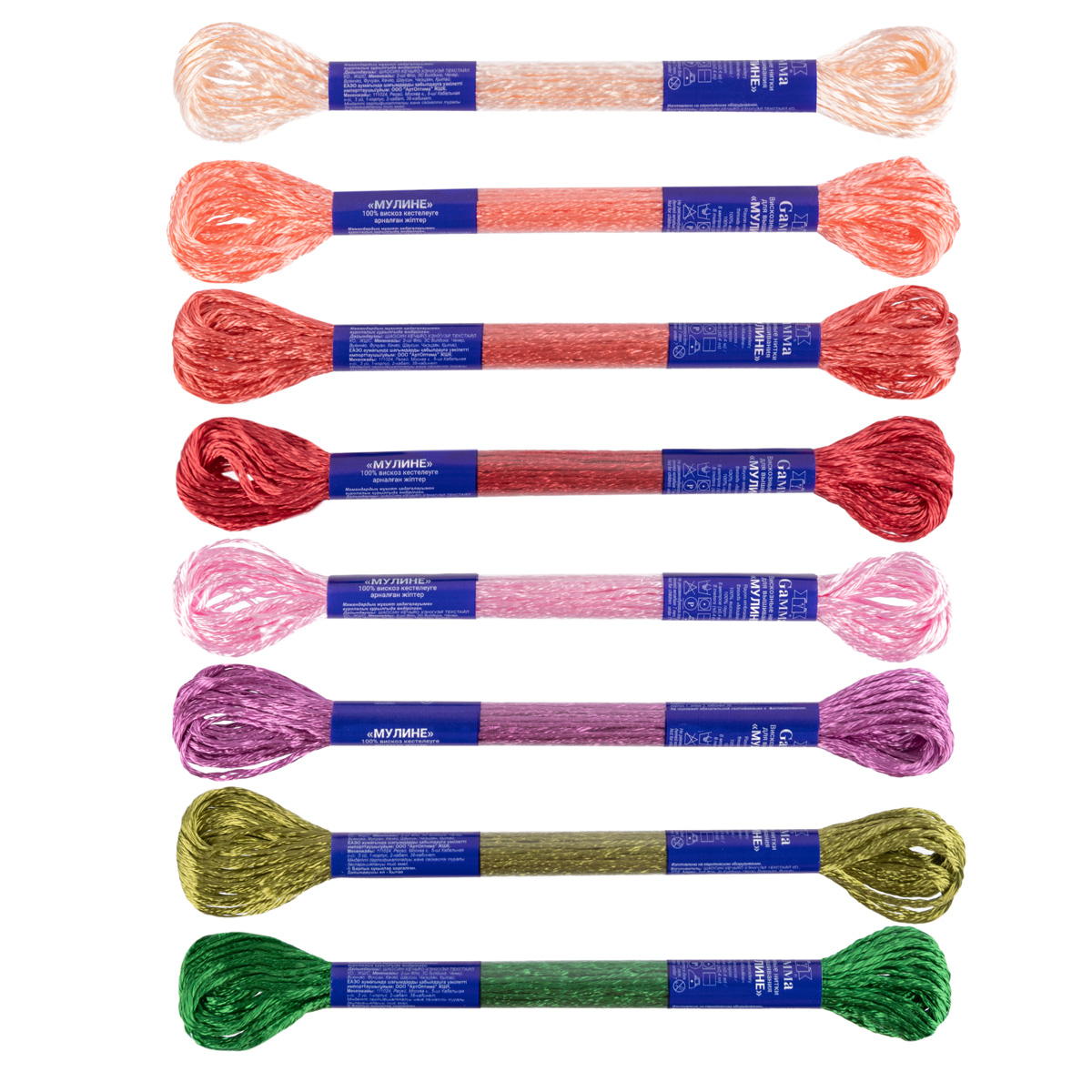 Вискозное мулине Gamma изготавливается из 100% вискозы на европейском оборудовании, с использованием качественных европейских красителей. Нитки гладкие, ровные, имеют стойкую окраску, не уступают по качеству мулине ведущих марок. По отзывам ведущих специалистов по вышиванию, мулине "Gamma" - одно из лучших в России по качеству. При своей доступной цене они аналогичны по качеству мулине ведущей марки - DMС.