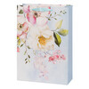Выполнен из плотной бумаги 210 г/кв.м, для удобной переноски на пакете имеются две ручки из атласной ленты.