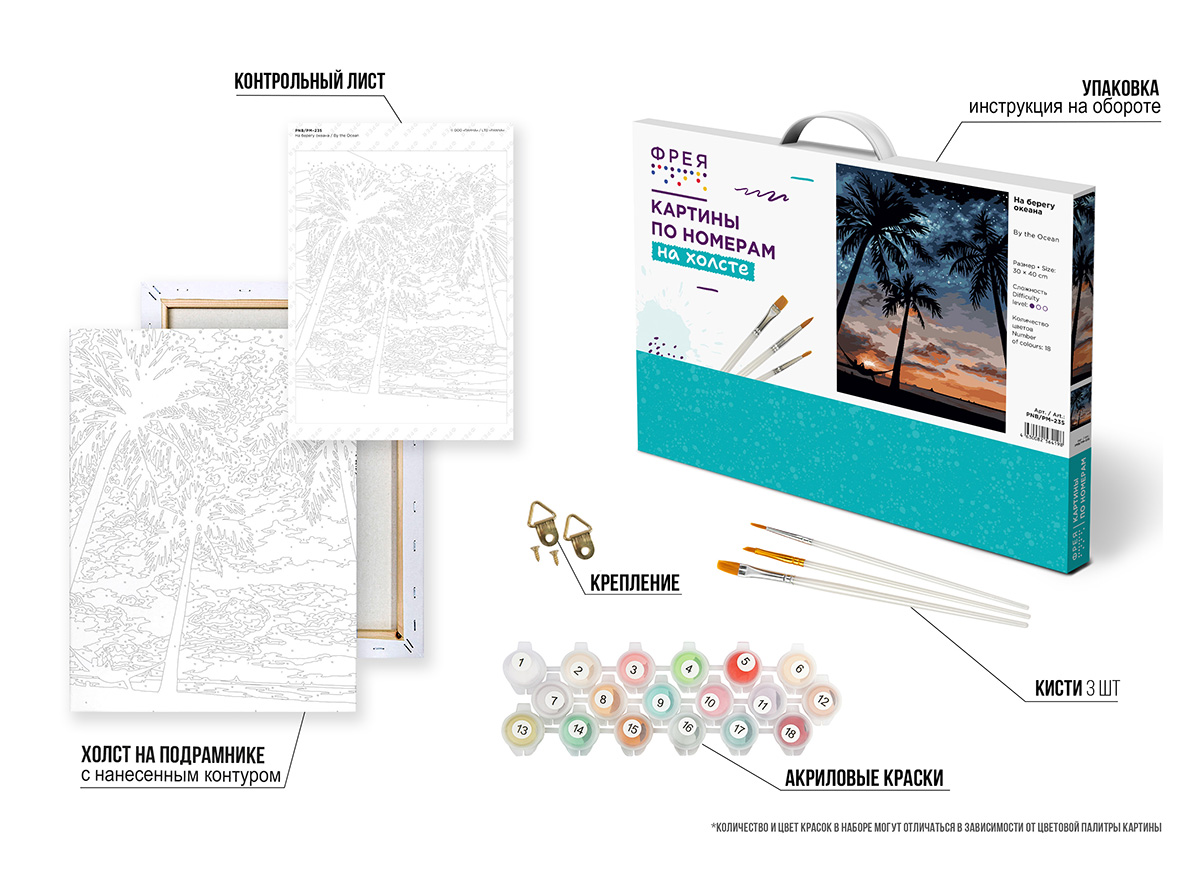 • Точная нумерация и четкий контур, который нанесен даже на торцы подрамника. Готовую работу можно не оформлять в раму или багет.