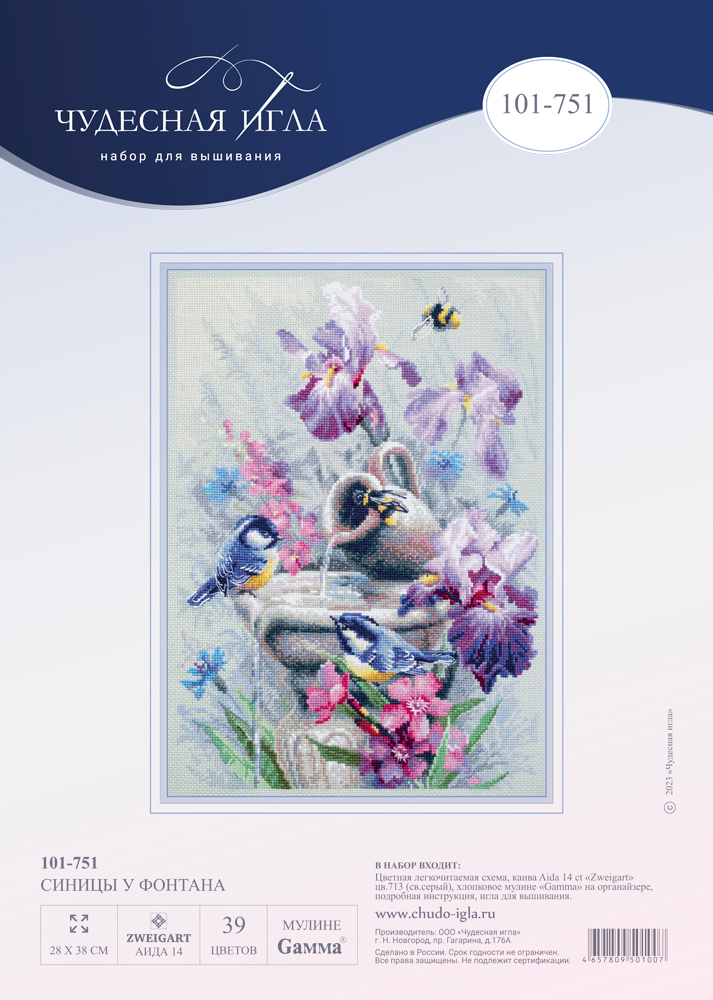 Набор для вышивания "Чудесная Игла" 101-751 "Синицы у фонтана".