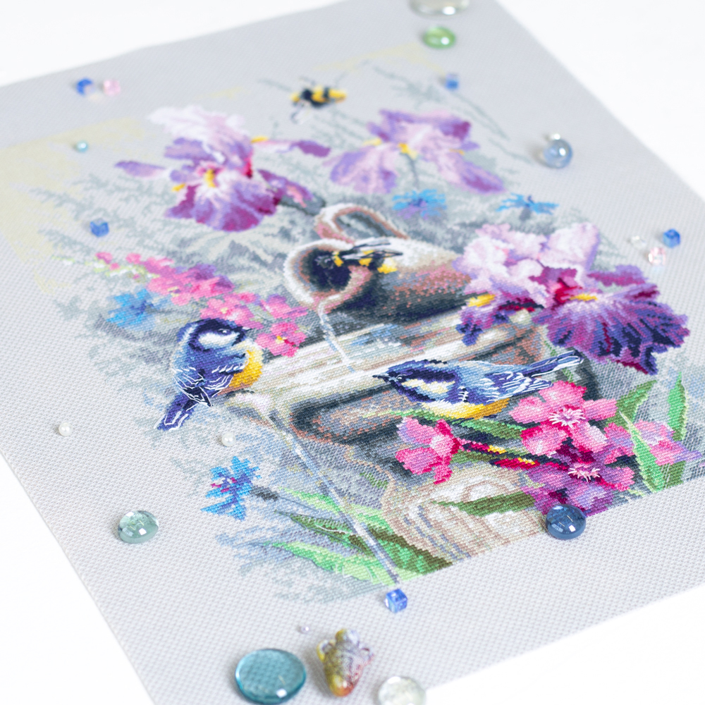 Набор для вышивания "Чудесная Игла" 101-751 "Синицы у фонтана" 28 х 38 см