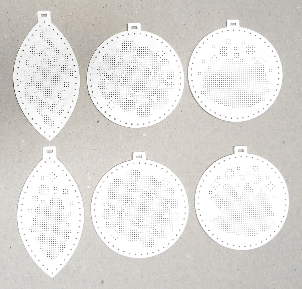 • Фетр с перфорацией белого цвета для 3 игрушек.