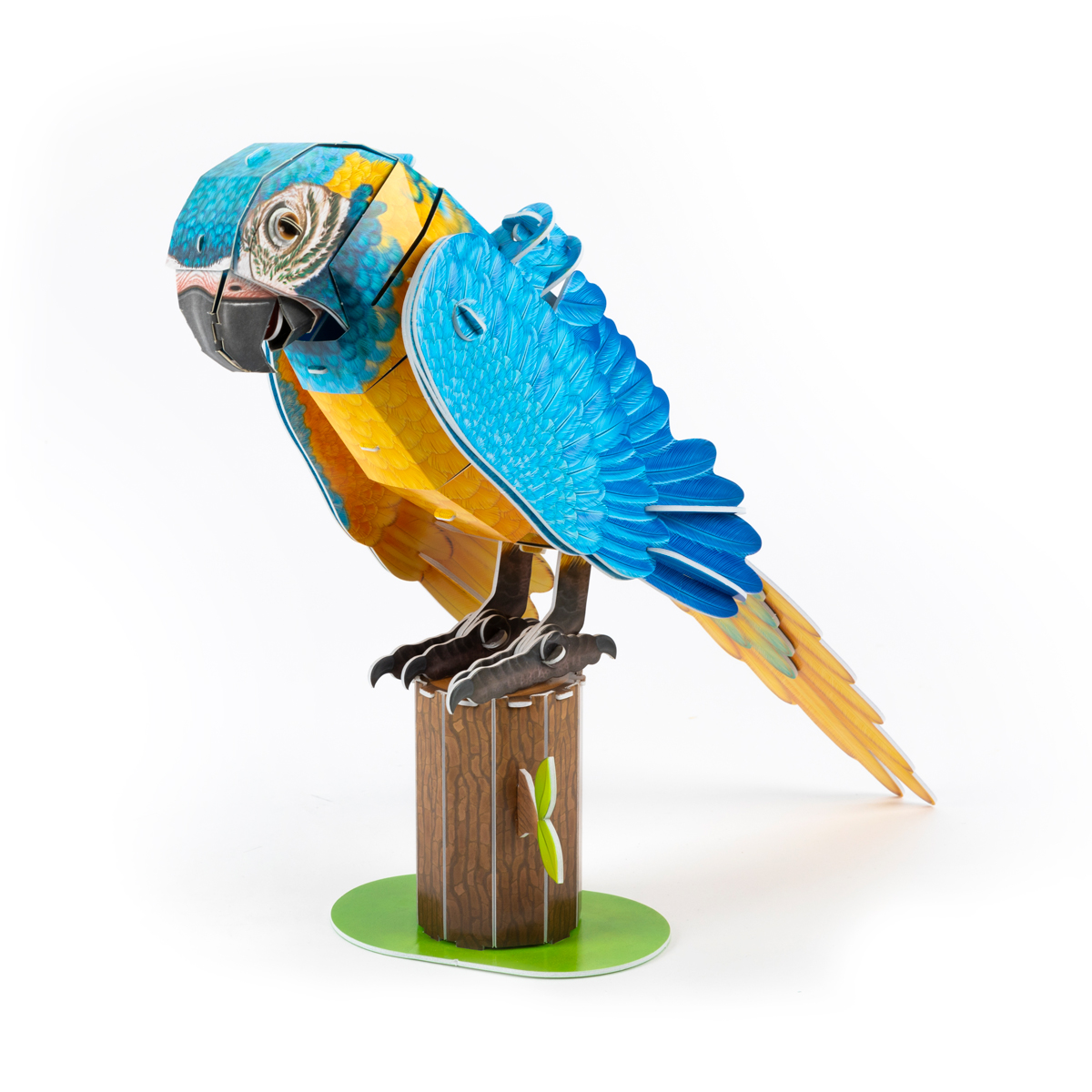 Как и все попугаи ара, синегорлый ара очень крупный: он может достигать размера в 95 сантиметров - почти один метр! Их мощный клюв легко раскусывает твердые плоды и орехи и может перекусить железную проволоку толщиной до 2 миллиметров. При этом синегорлые ара нежные супруги и родители: создают пару на всю жизнь и воспитывают птенцов до года, пока они не станут самостоятельными. Сегодня в тропических вечнозеленых лесах Южной Америки этих птиц осталось совсем немного - около 50-100 особей. Поэтому они внесены в Красную книгу и строго охраняются. Собери 3D-модель, и у тебя появится свой синегорлый ара. У него подвижны крылья, хвост и клюв, так что птица получится почти как живая. Не оставляй его одного надолго: попугаи - стайные птицы и не могут жить без общения!