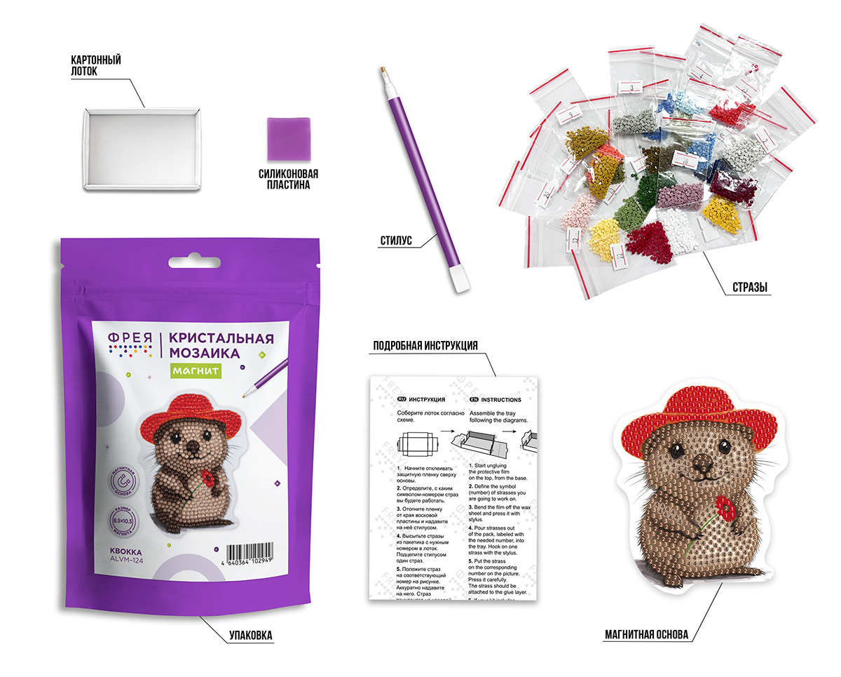 Лоток, Стилус, Стразы, Цветная схема на магнитной основе с клеевым слоем и защитной пленкой