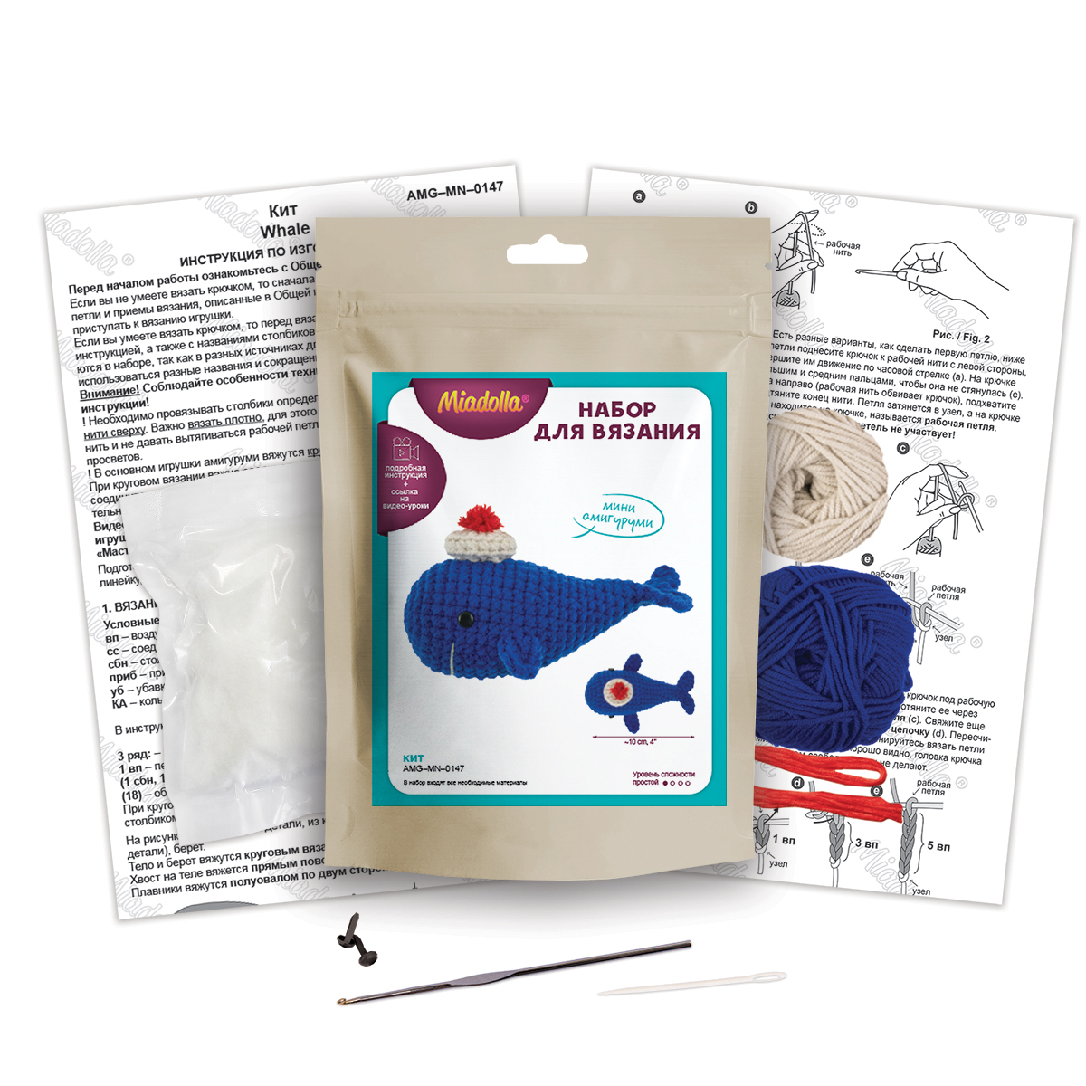 В набор входят все необходимые материалы для изготовления игрушки: пряжа , крючок для вязания 2.5 мм, пластиковая игла, глаза, синтепух, подробная инструкция с картинками.