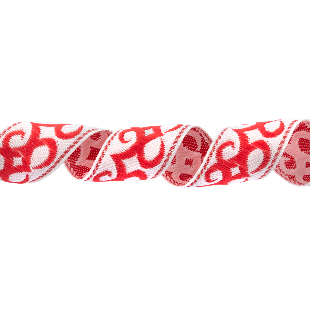 Лента жаккардовая 24 мм "Gamma" С3772 Лента отделочная "Орнамент для северных народов" рис 9787 белый/красный (№1)