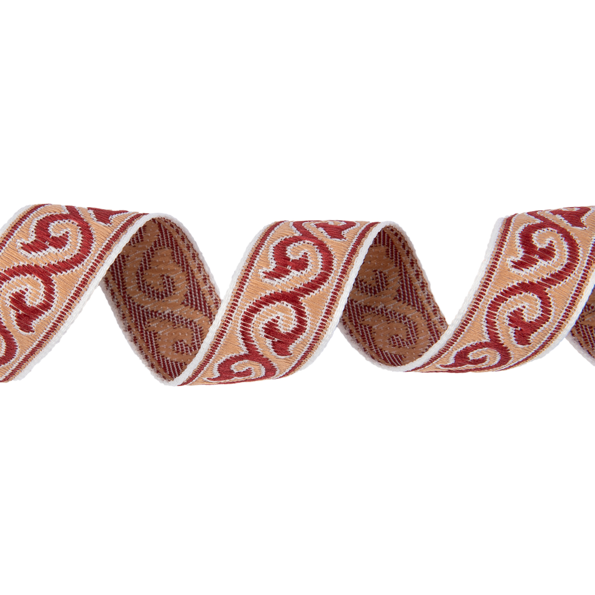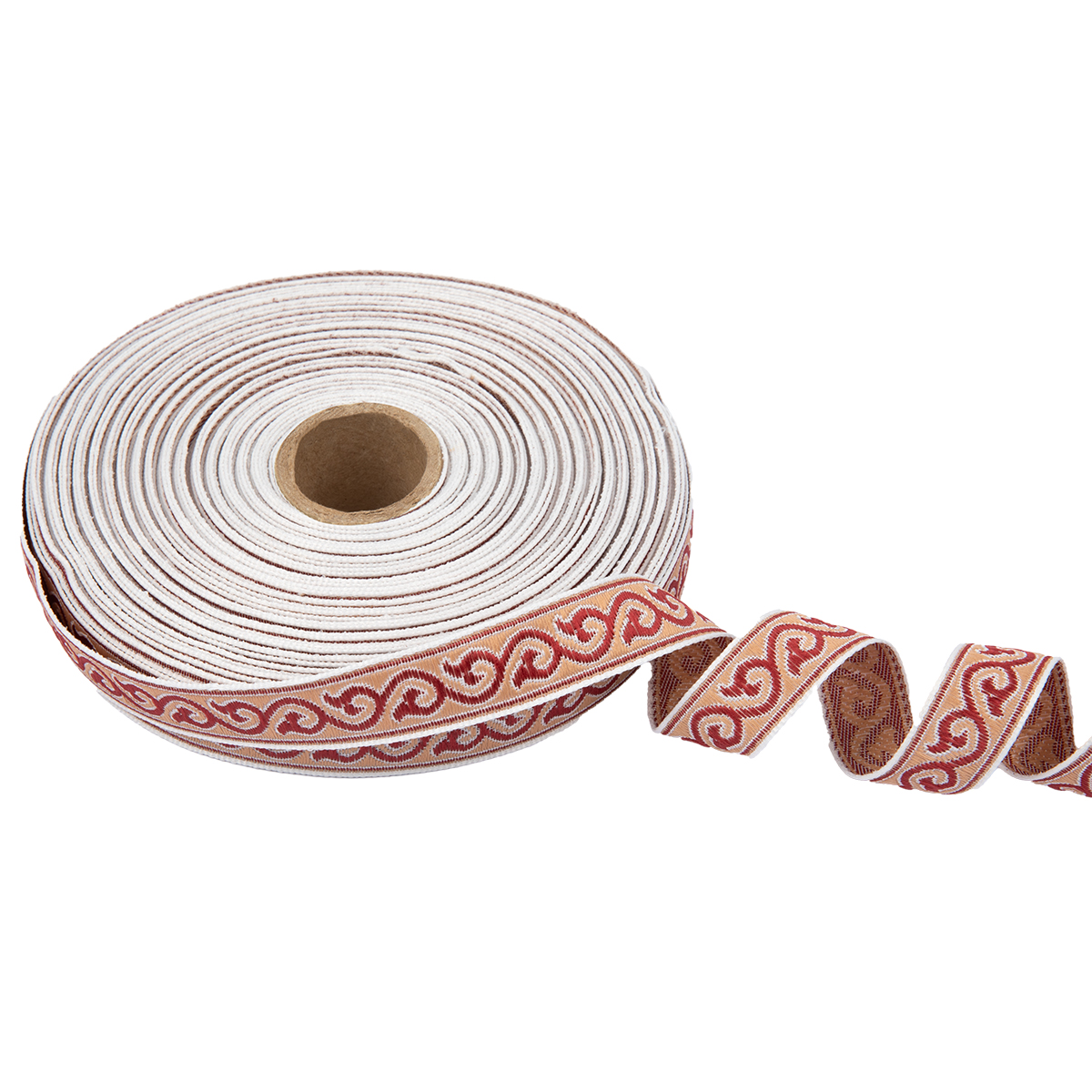Лента жаккардовая 18 мм "Gamma" С3771 отделочная "Орнамент для северных народов" рис 9594 белый/бордовый/ч.роза