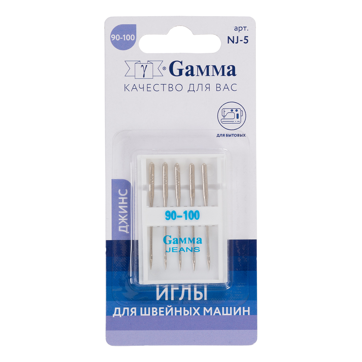 Иглы для быт. шв. машин "Gamma" NJ-5 №90-100 для джинсы 5 шт в блистере ассорти