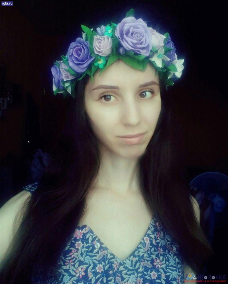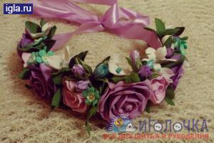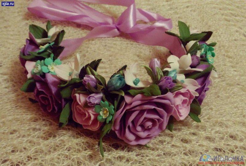 Венок из цветов на голову. Материал: фоамиран, атласная лента, декоративные элементы, проволока.