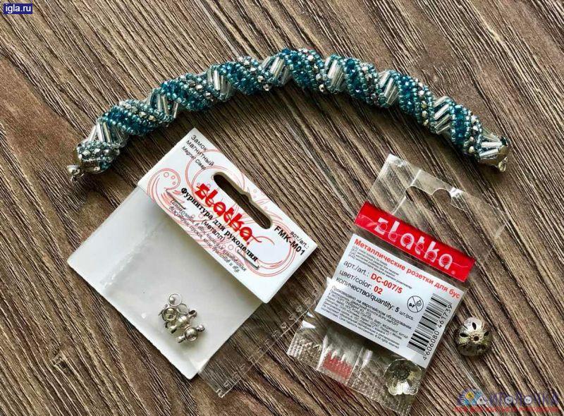 Летнее настроение у меня ассоциируется с морем. Бесподобная техника ажурного жгута из бисера и бусин - Русская спираль - поможет создать великолепное украшение для летнего наряда. В работе был использован бисер Zlatka RG564-11 (цвет 564), бисер стеклярус GG21-3 (цвет 0021) бусины стеклянные цвета морской волны и серебро 4 мм, фурнитура zlatka магнитный замок FMK-M01, розетки для бус DC-007/5 (цвет02).