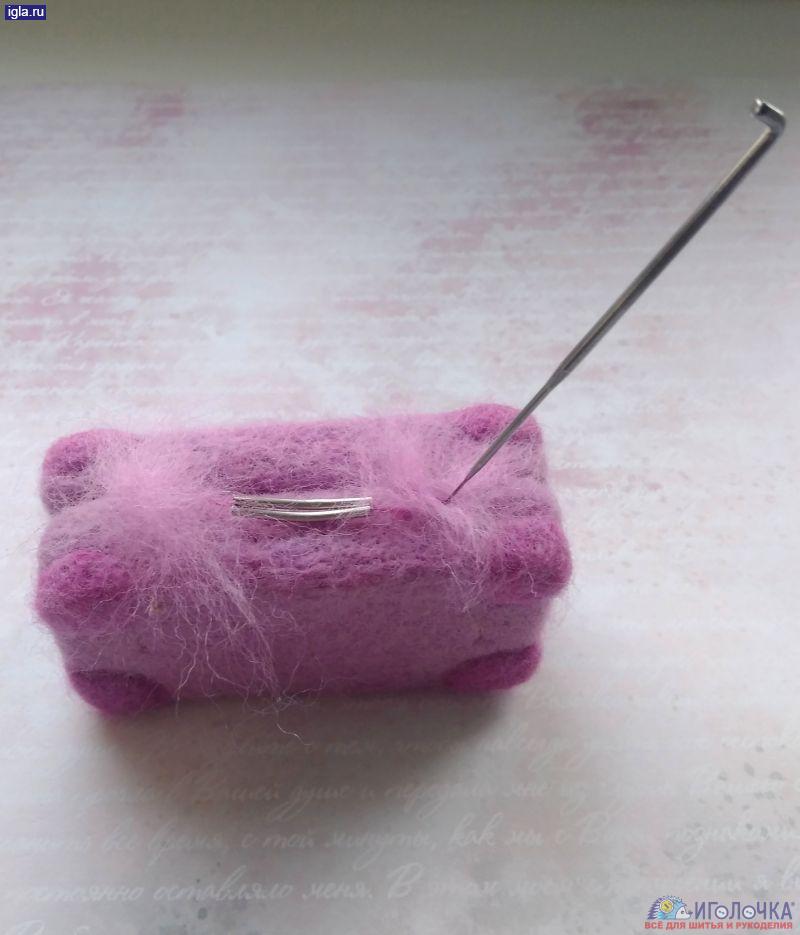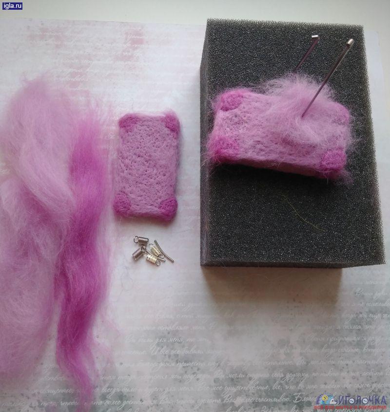 Работа выполнена в технике сухого валяния. В создании используется гребенная лента и металлическая фурнитура.