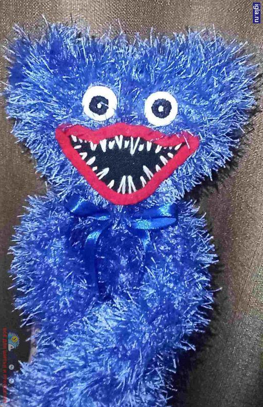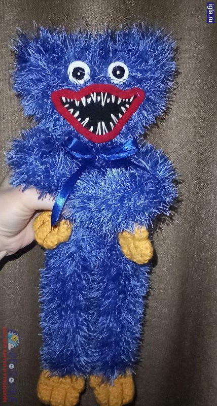 Вязаная крючком игрушка с ручной вышивкой глаз и рта.