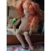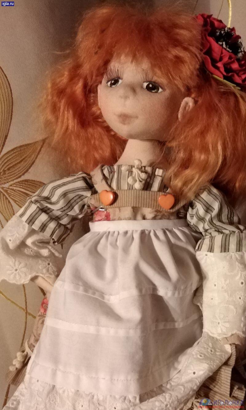 Кукла текстильная из трикотажа. Использована хлопковая ткань для пэчворка,хлопковое шитье, трессы из козочки, краски акриловые по ткани.Цветок выполнен из фоамирана.