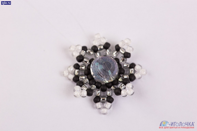 15. К ободку бусины-сердцевины прикрепим тычинки, следуя схеме.