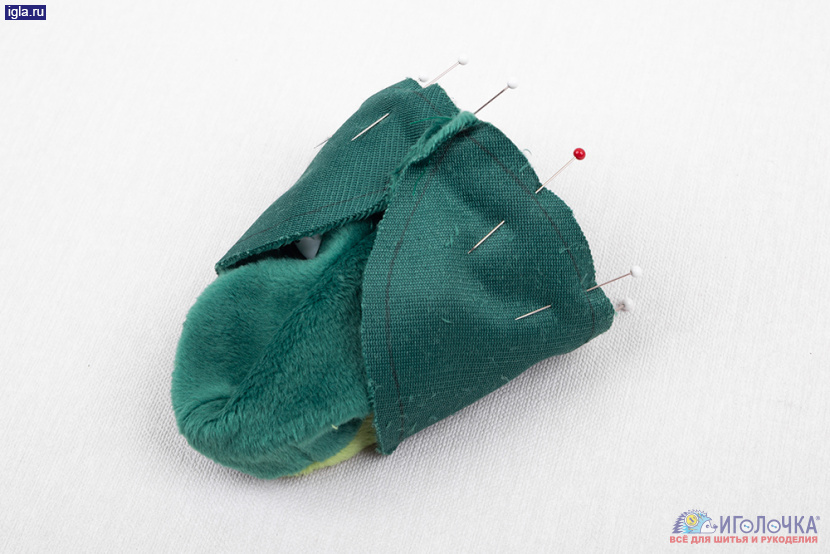 15. Скалываем детали передней части головы и затылка, совмещая швы и метки.